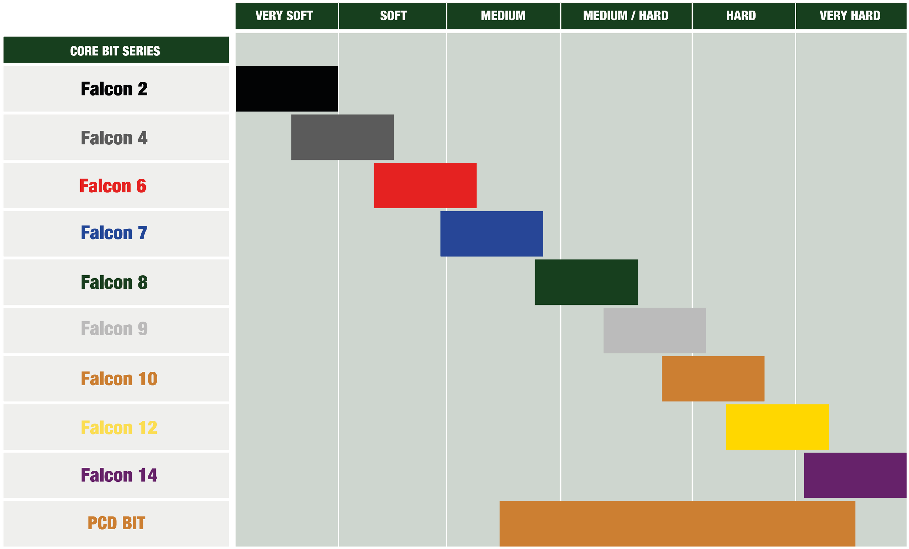 Please refer to the following graphs to establish if the bit you are purchasing is right for the job.. The following graphs demonstrate what series of core drill bit and what drill bit profile would be appropriate for differing rock formations.